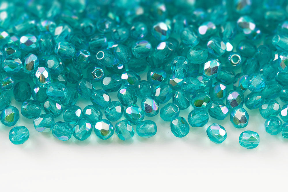 Czech Fire Polished 3mm Opal Aqua AB Round Beads