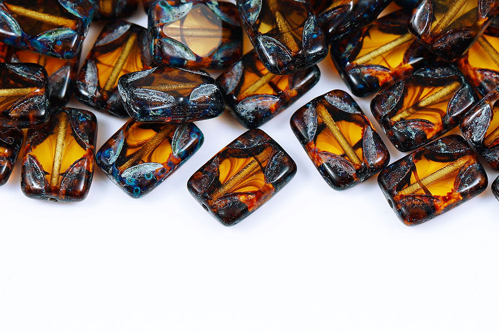 Window Rectangle 12×8mm Black Gold Bronze 1-Hole Czech Beads