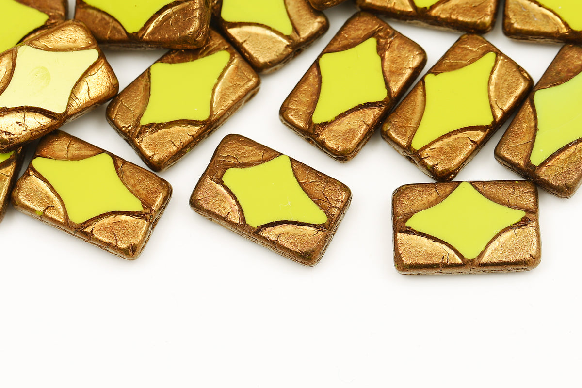Window Rectangle 17×11mm Lemon Travertin 1-Hole Czech Beads