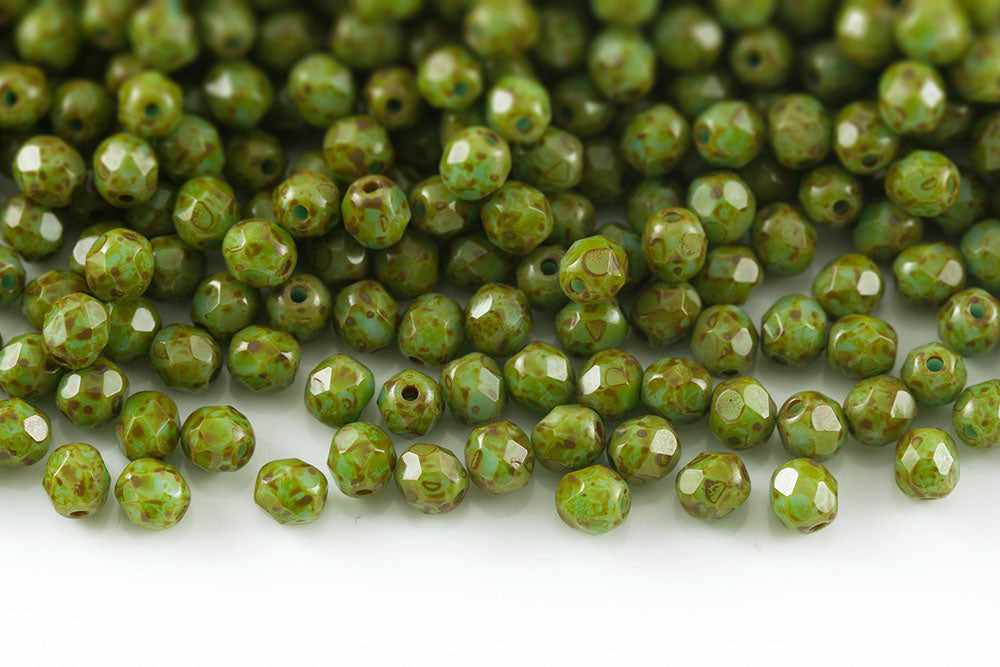 Czech Fire Polished 4mm Opaque Olivine Copper Speckle Finish Round Beads