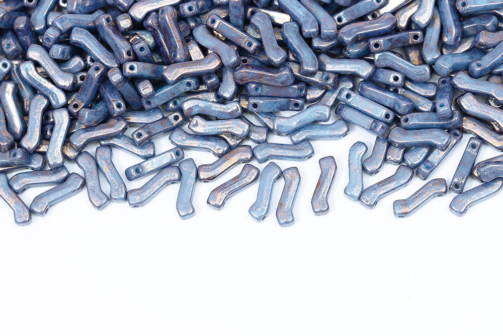 Z Beads 3×10mm Opaque Blue Travertin 2-Hole Czech Beads