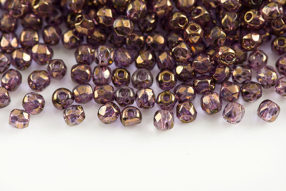 Czech Fire Polished 2.0mm Magic Violet Gray Round Beads
