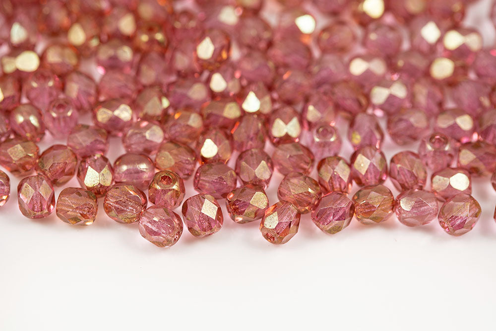 Czech Fire Polished 2.0mm Crystal Pink Finish Round Beads