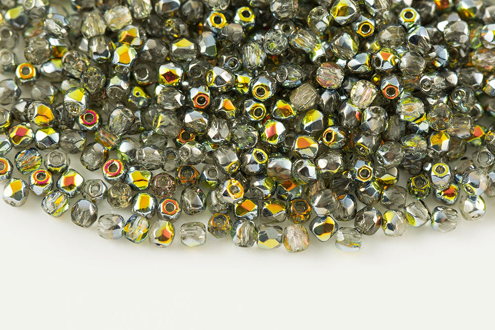 Czech Fire Polished 2.0mm Crystal Vitrail Round Beads