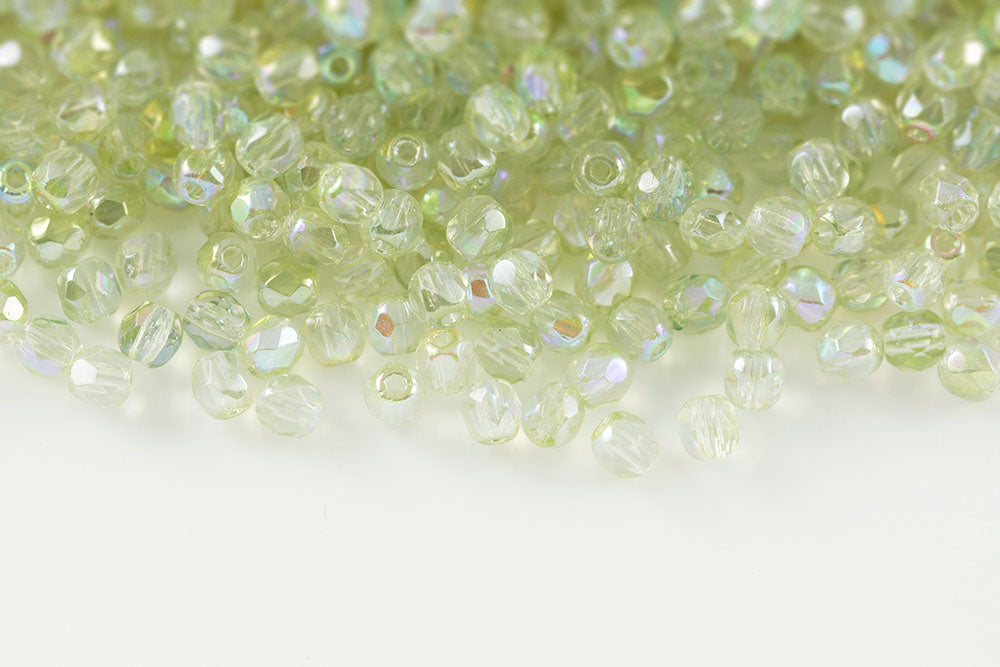 Czech Fire Polished 2.0mm Crystal Yellow Green Finish Round Beads