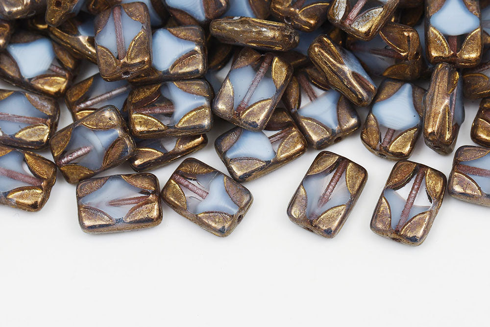 Window Rectangle 12×8mm Crystal Blue Mixed Brown Luster 1-Hole Czech Beads