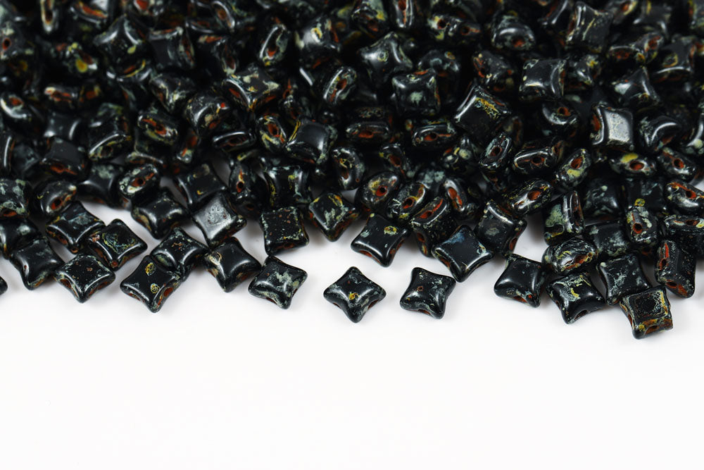 Wibeduo 8×8mm Jet Travertin 2-hole Czech Beads