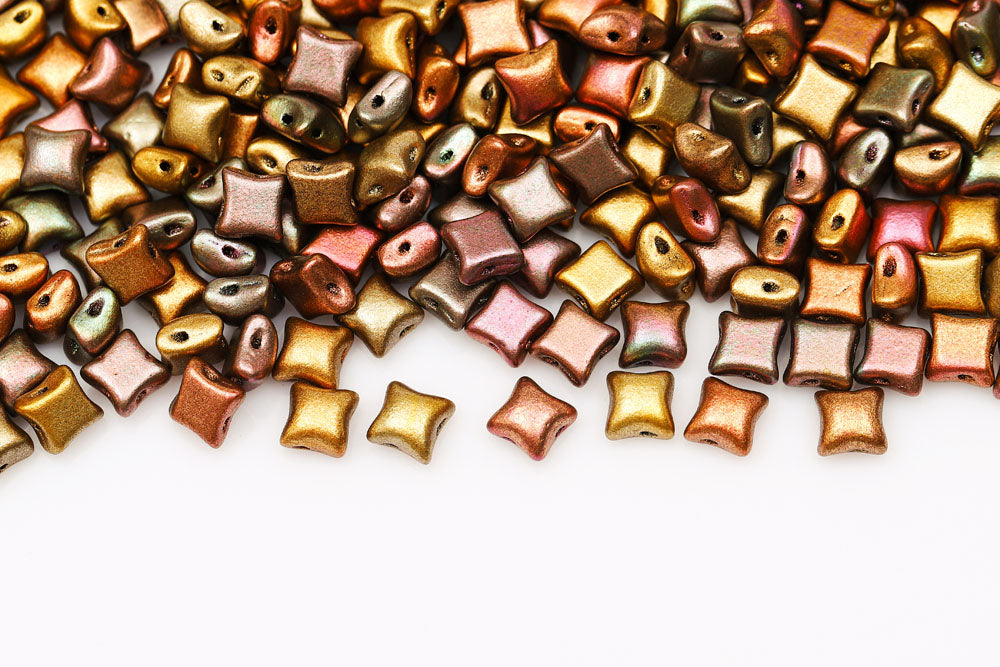 Wibeduo 8×8mm Jet Gold Bronze 2-Hole Czech Beads