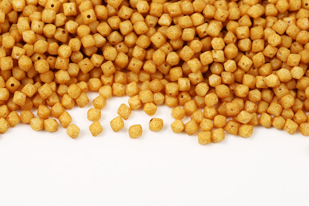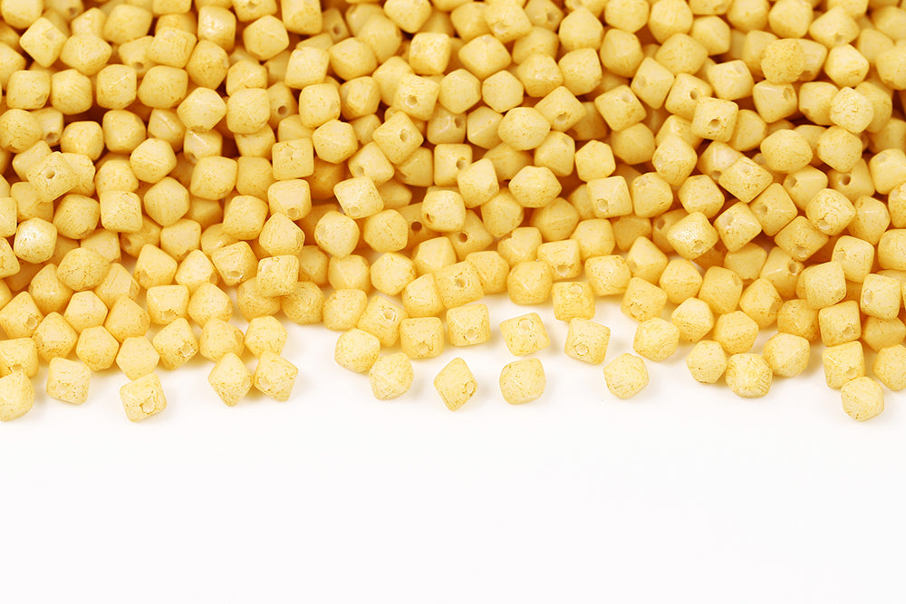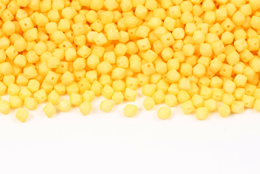 Bicone 4×4mm Alabaster White With Yellow Soil Finish 1-hole Czech Beads