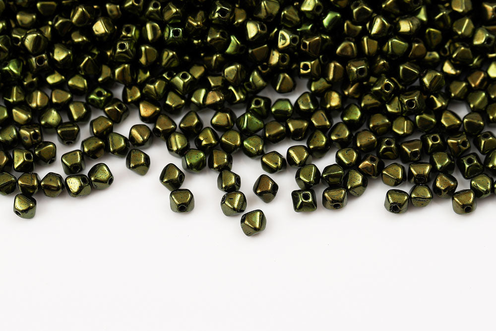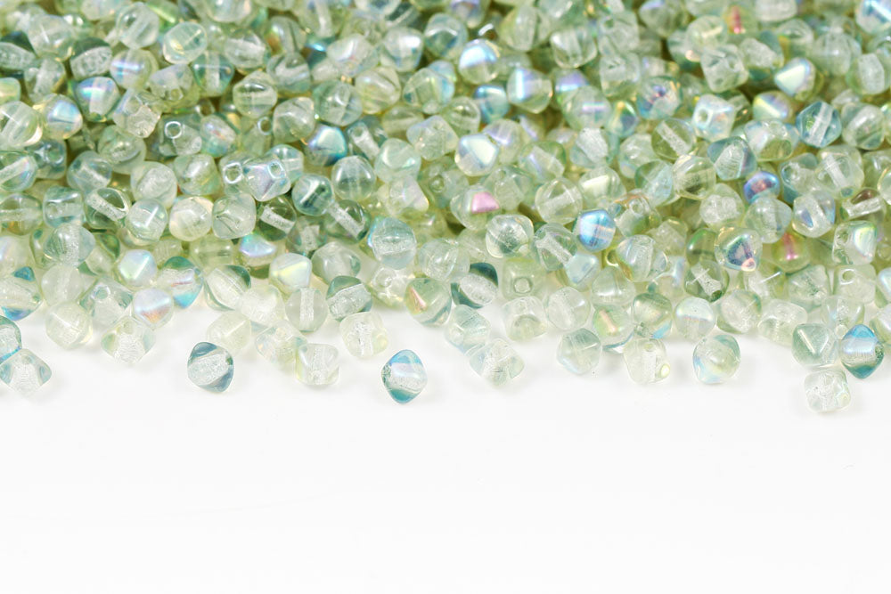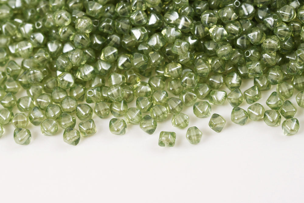Bicone 4×4mm Crystal Green Luster 1-hole Czech Beads