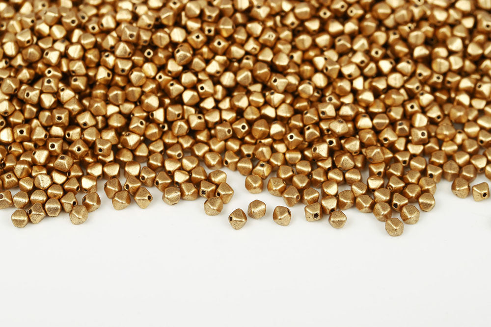 Bicone 4×4mm Crystal Vintage Pale Gold 1-hole Czech Beads