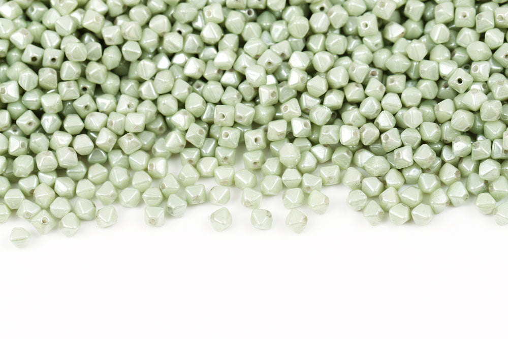 Bicone 4×4mm Alabaster White Green Luster 1-hole Czech Beads