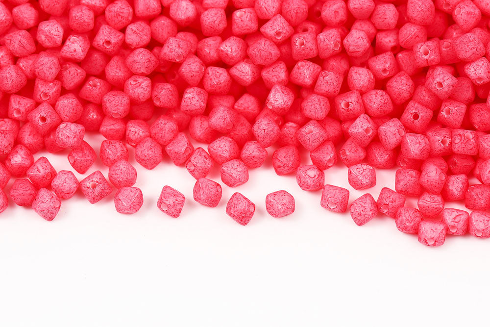 Bicone 4×4mm Alabaster White With Pink Soil Finish 1-hole Czech Beads
