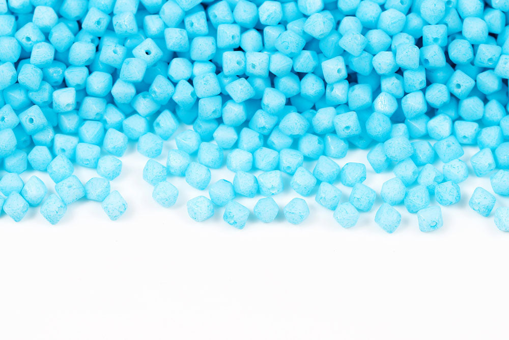 Bicone 4×4mm Alabaster White With Aqua Soil Finish 1-hole Czech Beads