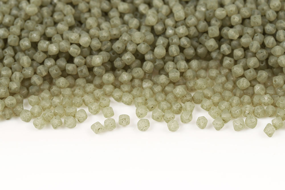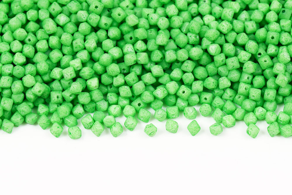 Bicone 4×4mm Alabaster White With Green Soil Finish 1-hole Czech Beads
