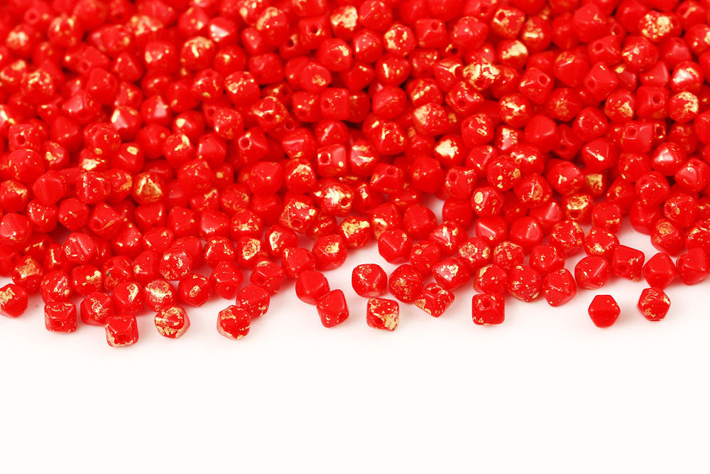 Bicone 4×4mm Coral Red Gold Splash 1-hole Czech Beads
