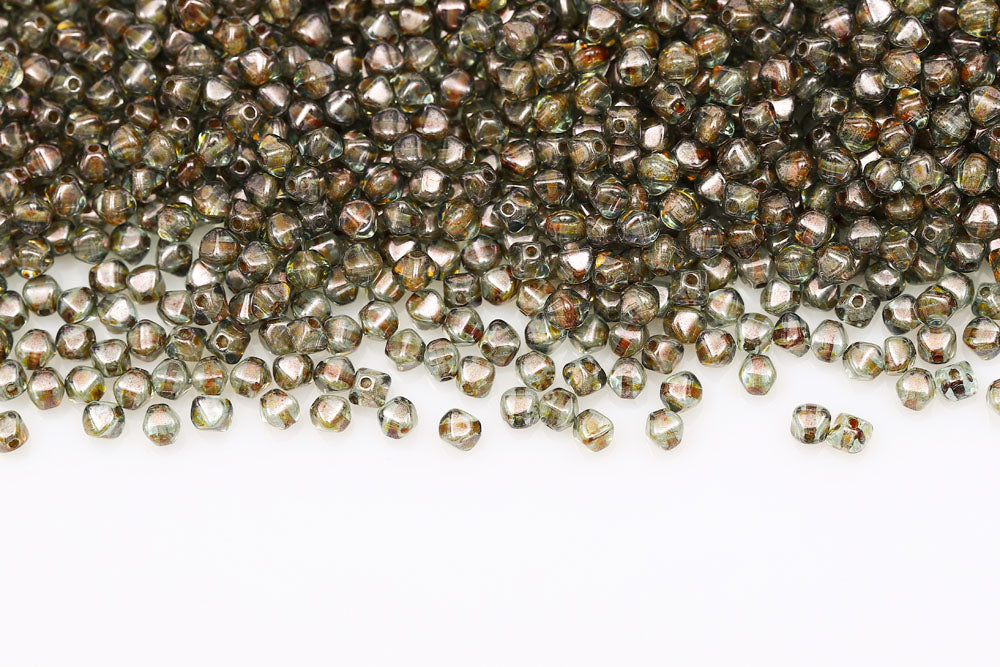 Bicone 4×4mm Crystal With Green Soil Finish 1-hole Czech Beads