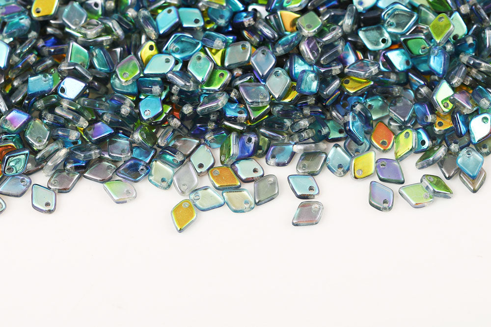 Dragon 1.5×5mm Crystal Blue Rainbow 1-Hole Czech Beads
