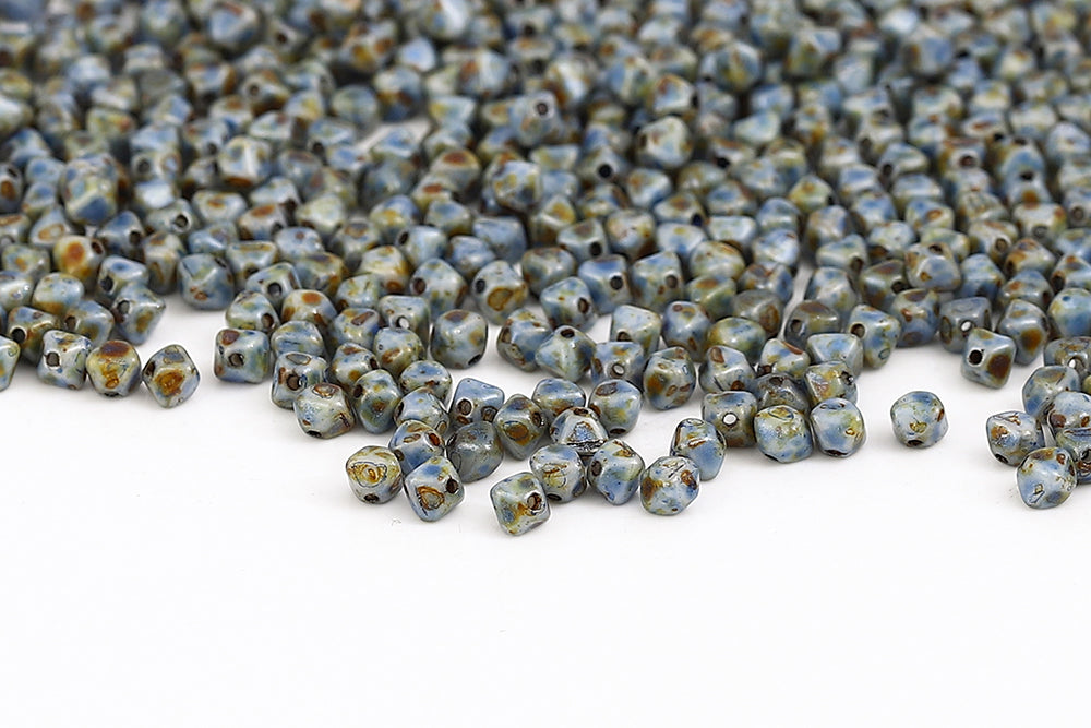 Bicone 4×4mm Opaque Lt.blue Travertin 1-hole Czech Beads