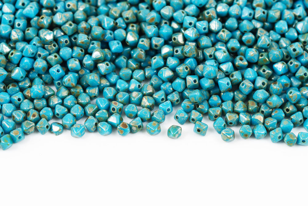 Bicone 4×4mm Turquoise Drak Blue Picasso 1-hole Czech Beads