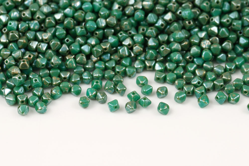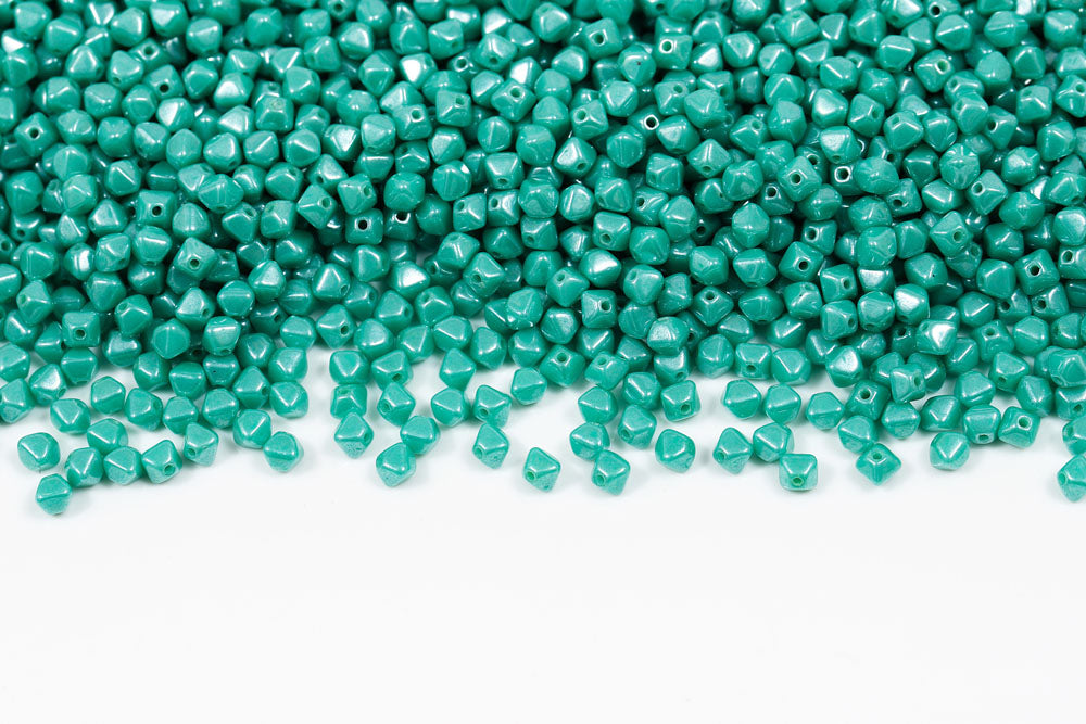Bicone 4×4mm Turquoise Green Luster 1-hole Czech Beads