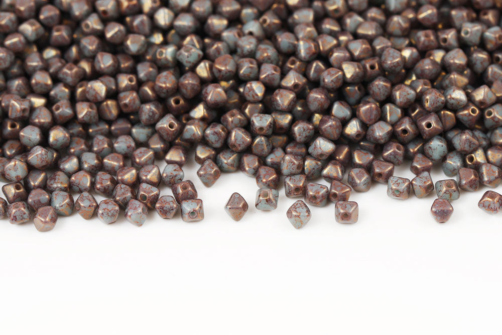 Bicone 4×4mm Turquoise Dark Blue Nebula 1-hole Czech Beads