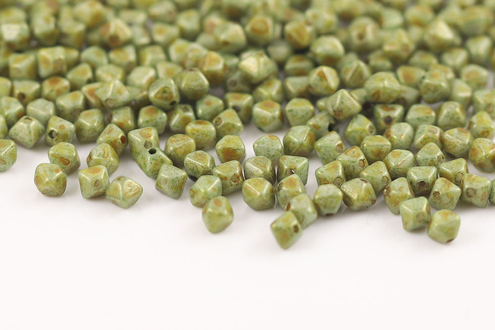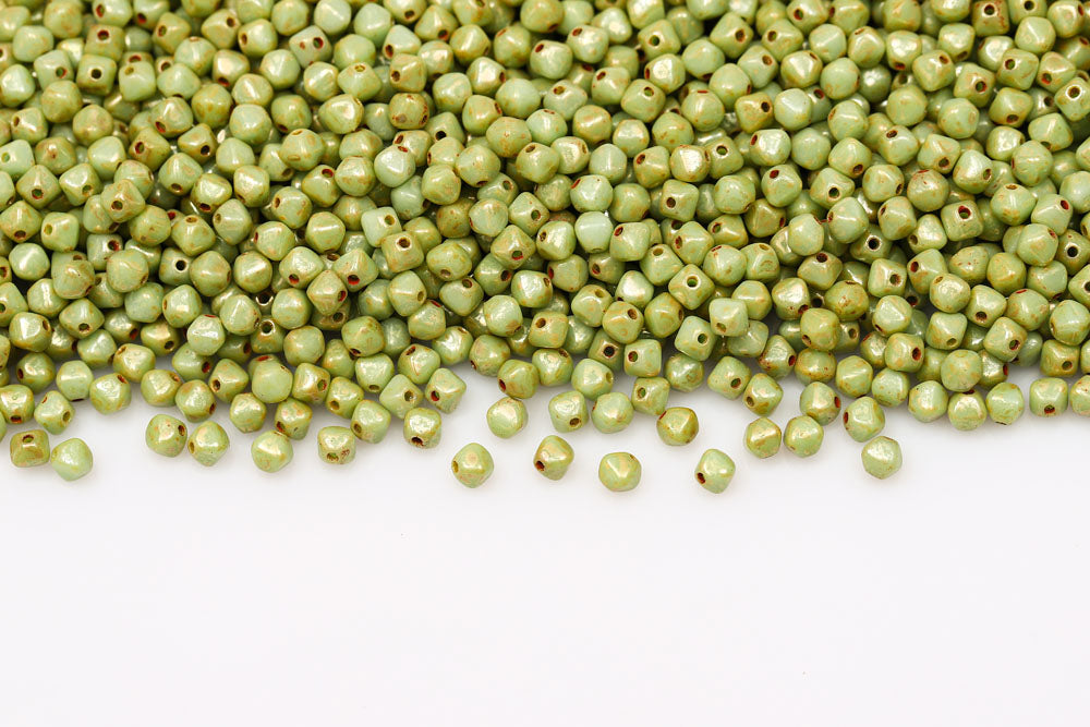 Bicone 4×4mm White With Green Picasso Finish 1-hole Czech Beads