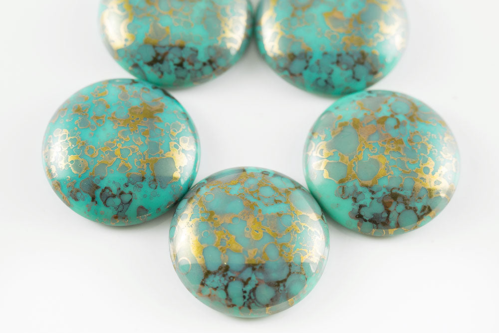 Cabochons 25mm Turquoise Green With Gold Marble Finish Nonporous Czech Beads