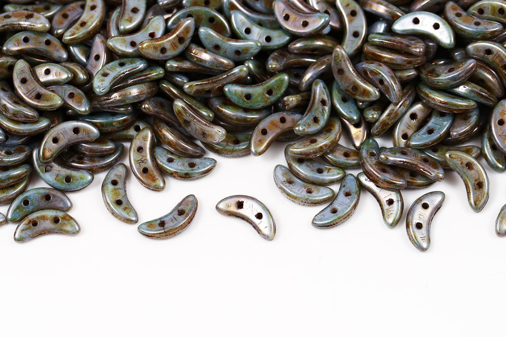 Crescent 3×10mm Alabaster White 2-Hole Czech Beads
