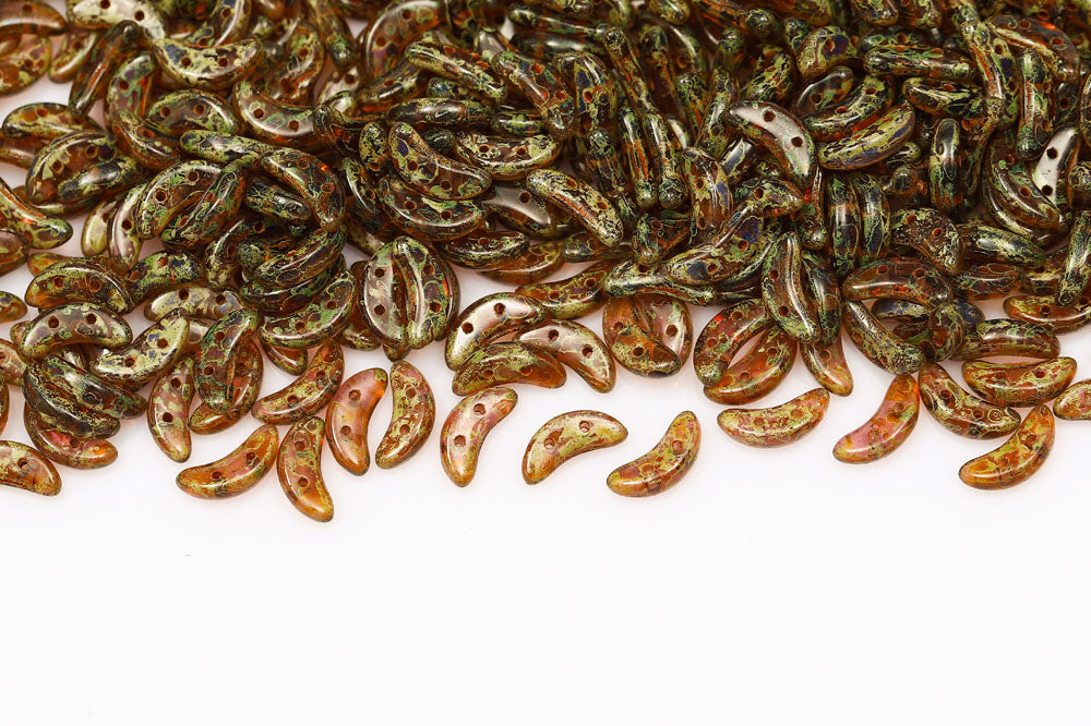 Crescent 3×10mm Amethyst Travertin 2-Hole Czech Beads