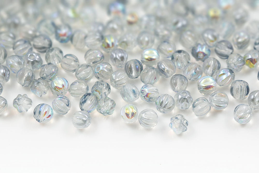 Melon 4mm Crystal Blue Rainbow Czech Beads