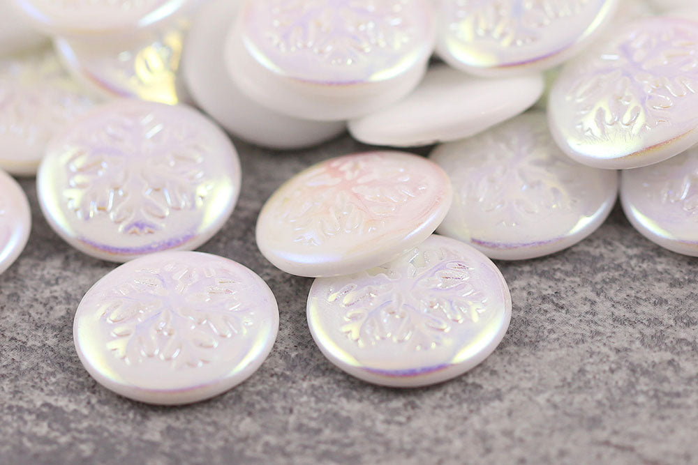 Snowflake Cabochons 21mm White AB Nonporous Czech Glass Beads