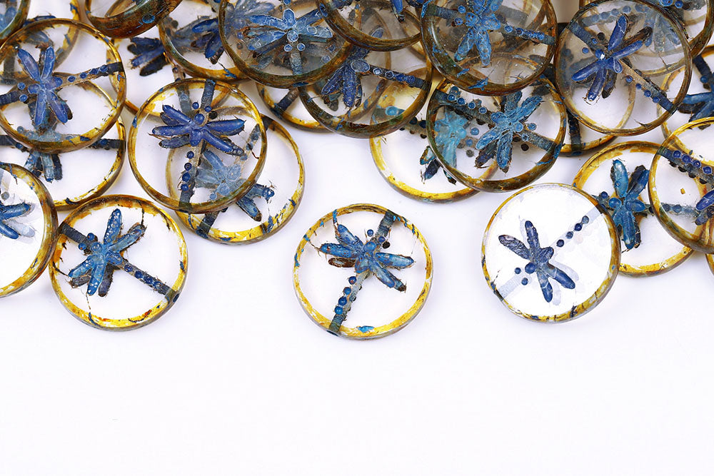Dragonfly Coin 17mm Crystal Travertin With Purple 1-Hole Czech Beads