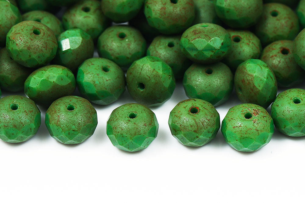Firepolished Donuts 6×9mm Opaque Lt.Green Travertin Czech Beads