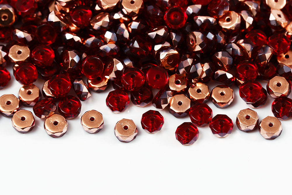 Firepolished Rondelle 3×6mm Dark Siam Gold Capri Czech Beads