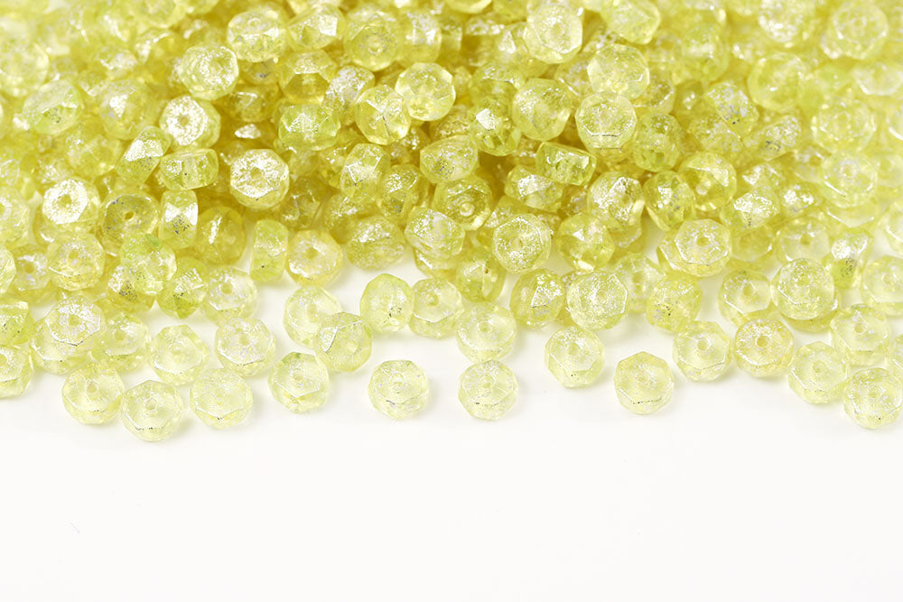 Firepolished Rondelle 3×6mm Silver Splash Lemon Czech Beads