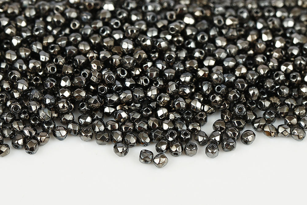 Czech Fire Polished 2.0mm Crystal Hematite Round Beads