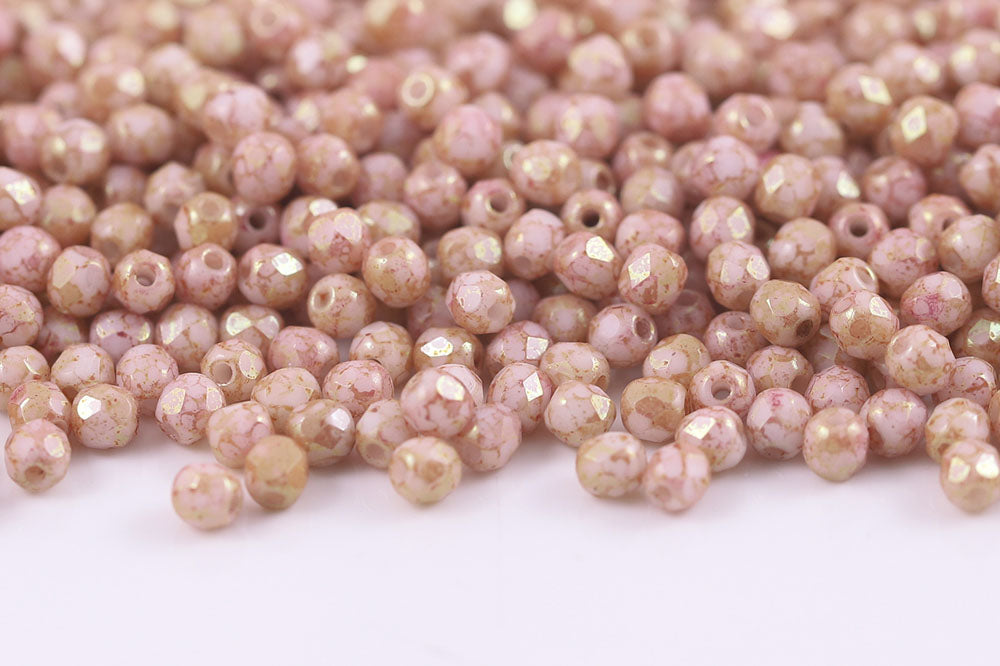 Czech Fire Polished 3mm Chalk Red Terracotta Round Beads