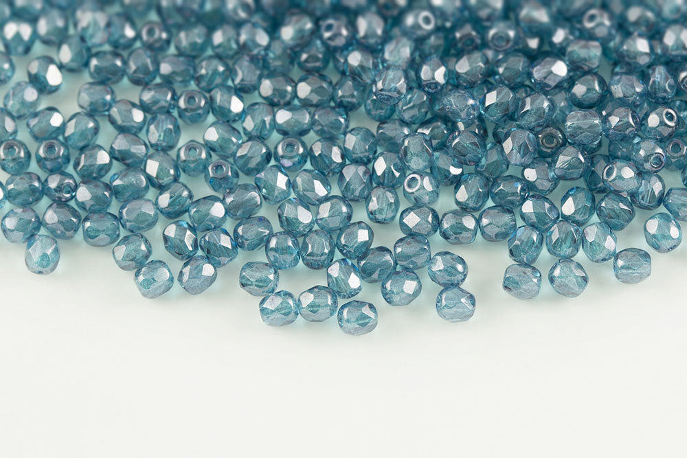 Czech Fire Polished 4mm Crystal Blue Luster Round Beads