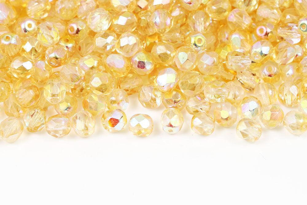 Czech Fire Polished 6mm Crystal Yellow Rainbow Round Beads