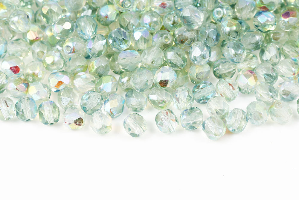 Czech Fire Polished 6mm Crystal AB Round Beads