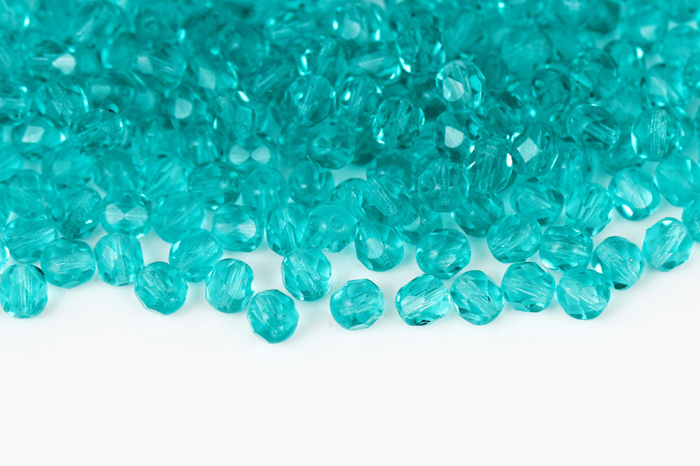 Czech Fire Polished 6mm Turquoise Green Round Beads