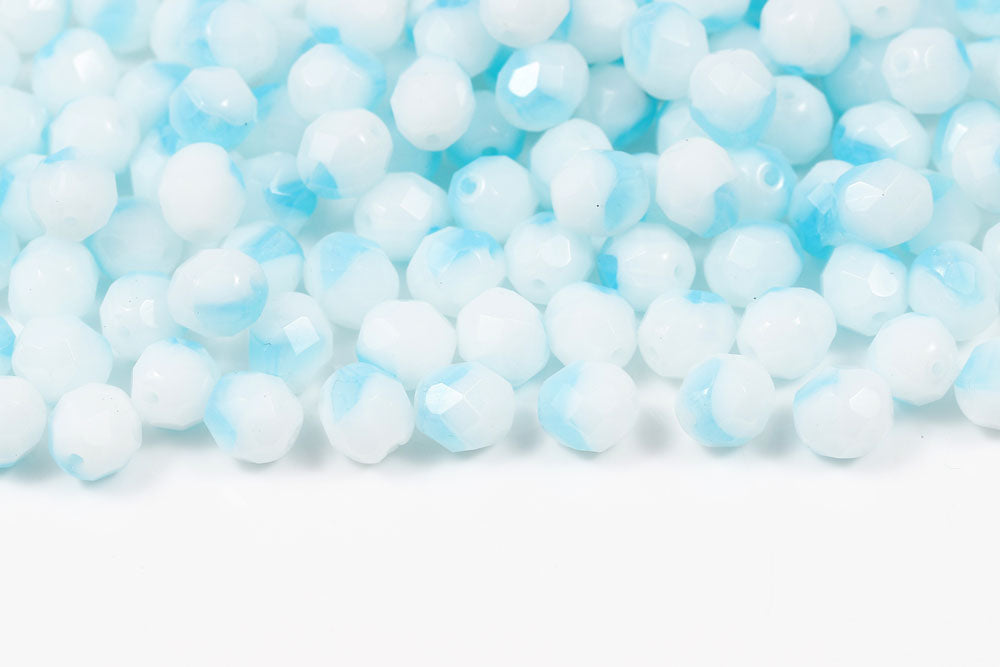 Czech Fire Polished 8mm Opal Aqua&White Mixed Round Beads