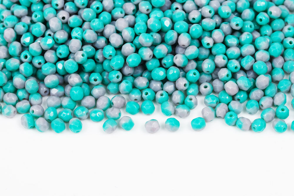 Czech Fire Polished 4mm Opaque Amethyst&Turquoise Green Round Beads
