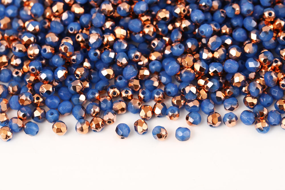 Czech Fire Polished 4mm Opal Drak Blue Capri Gold Round Beads