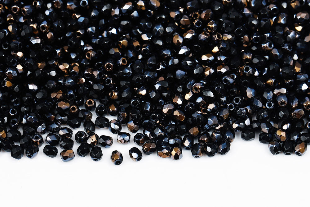 Czech Fire Polished 3mm Jet Labrador Round Beads