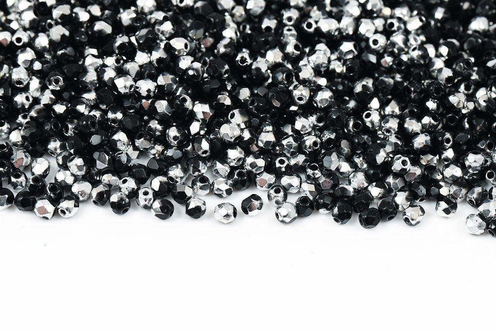 Czech Fire Polished 4mm Jet Chrom Round Beads