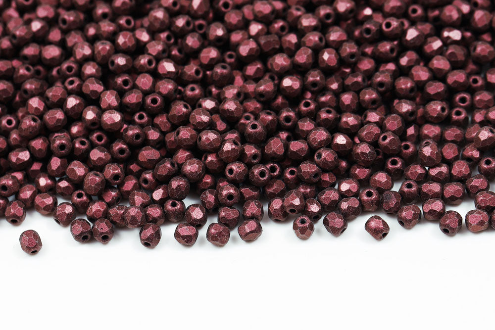 Czech Fire Polished 3mm Pink Gold Powder Matt Finish Round Beads