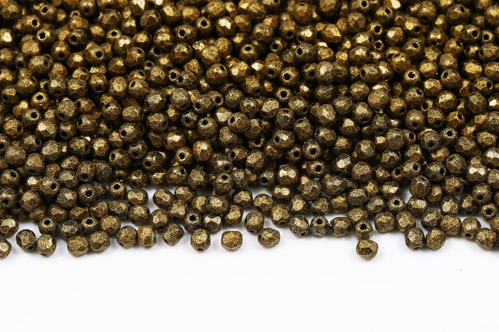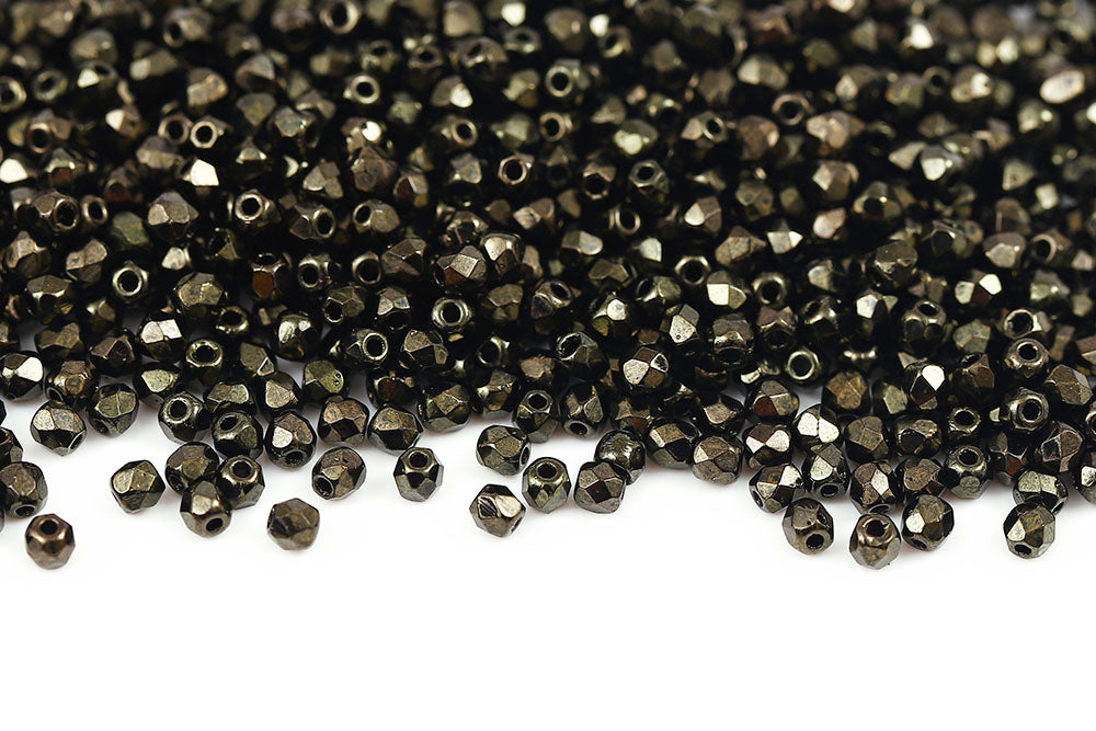 Czech Fire Polished 3mm Jet Gold Powder Matt Finish Round Beads