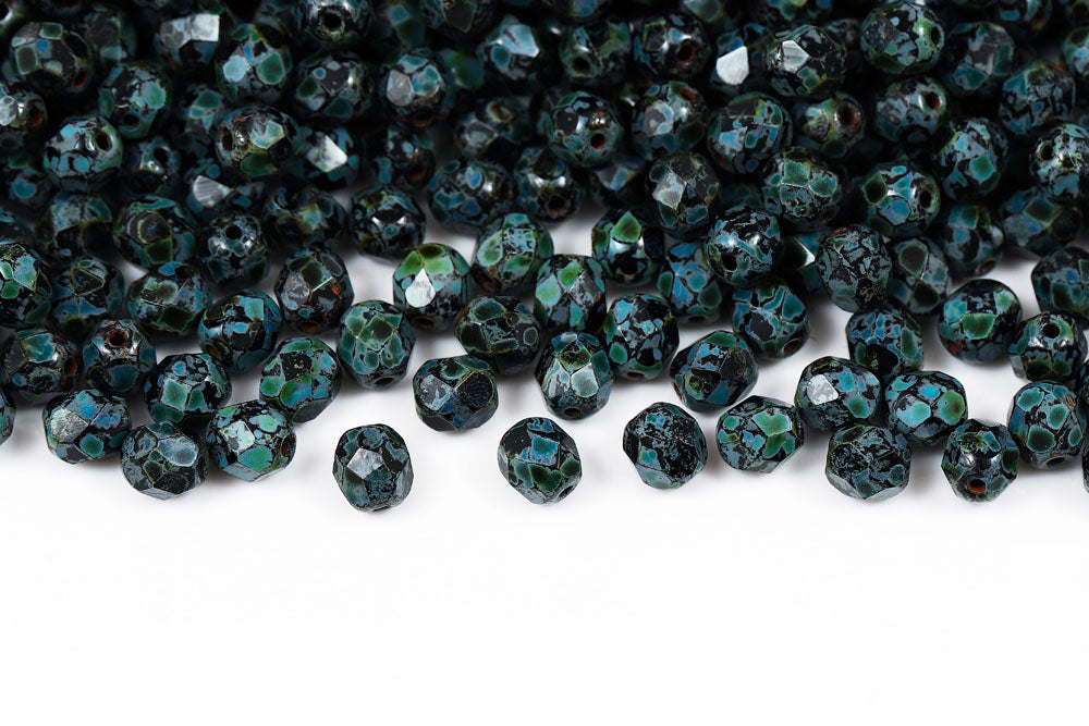 Czech Fire Polished 6mm Jet Travertin Round Beads